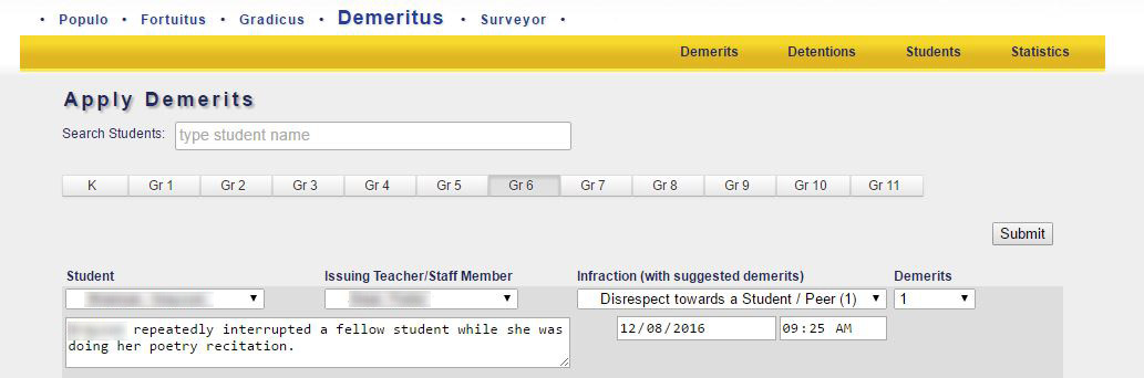 - Issue Demerits
