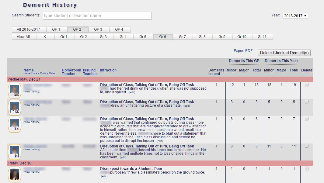 - Demerit History