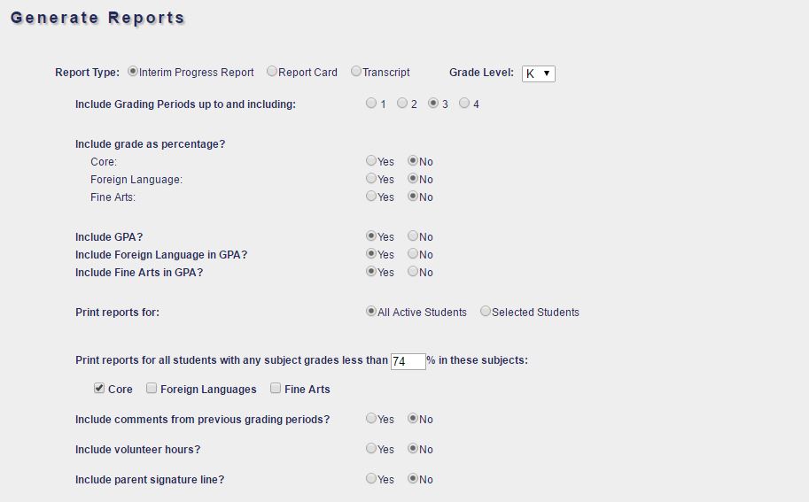 This report is available to parents for their own children through the Gradicus Parent Portal.