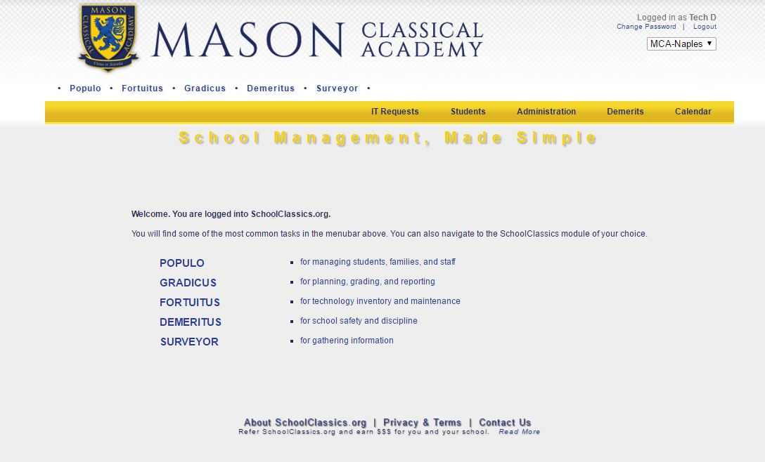 This slideshow highlights just some of the key features of SchoolClassics.org. If you would like a more in-depth demonstration using a remote video connection, please contact support@schoolclassics.org.